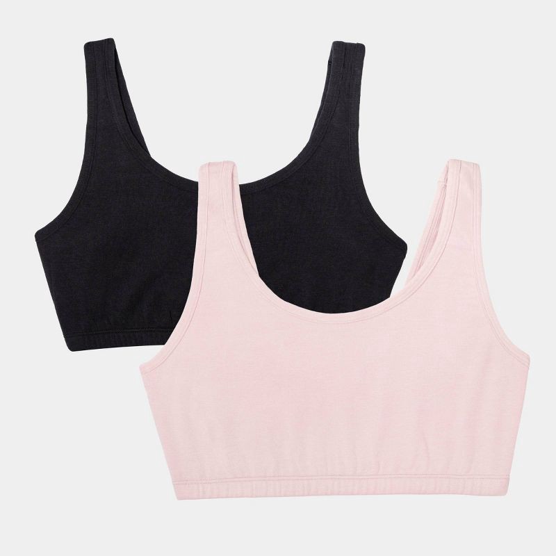 Fruit of the Loom Women's Unbelievably Soft Cotton Tank Style Sports Bra 2pk - Black Hue/Rose Shadow M