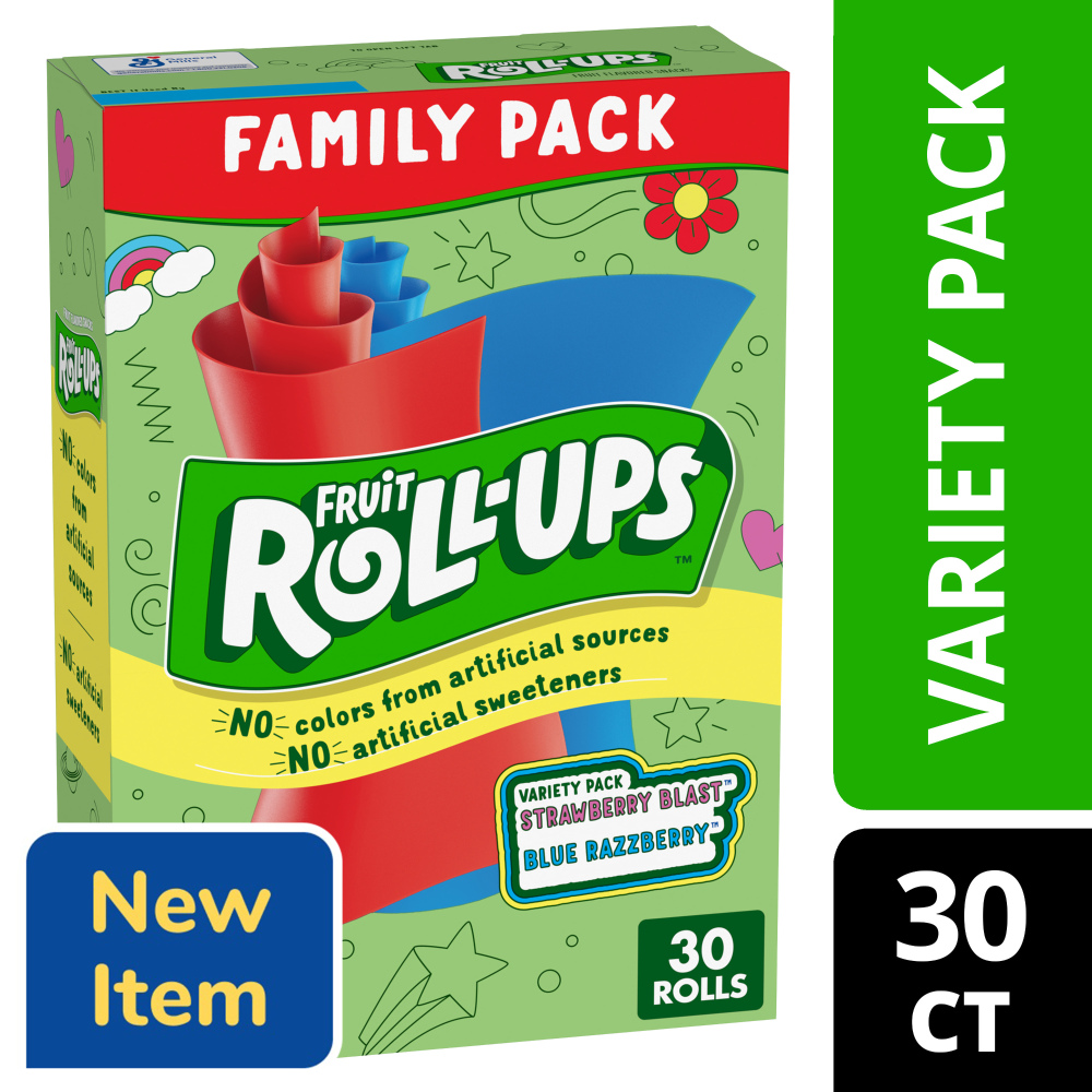 When you need a yummy snack for kids of all ages, choose the juicy goodness of Fruit Roll-Ups Strawberry Blast and Blue Razzberry Fruit Flavored Snacks. Unwrap tasty fun with this fruity and chewy var…