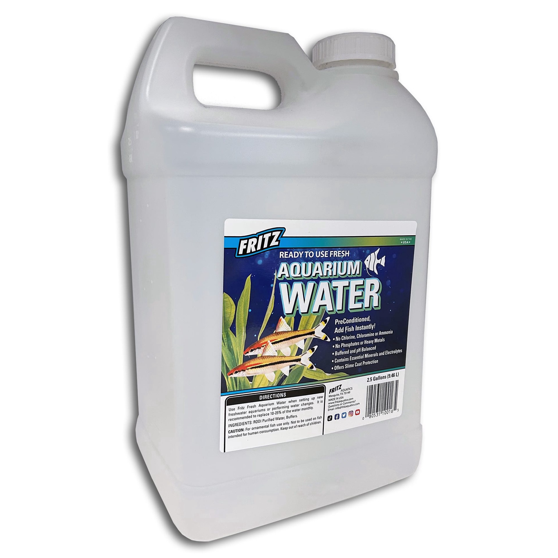 Fritz Aquatics Ready to Use Fresh Aquarium Water is pre-conditioned and contains no Chlorine, Chloramine, Ammonia, Phosphates or Heavy Metals. Buffered and pH balanced, this high quality aquarium wate…