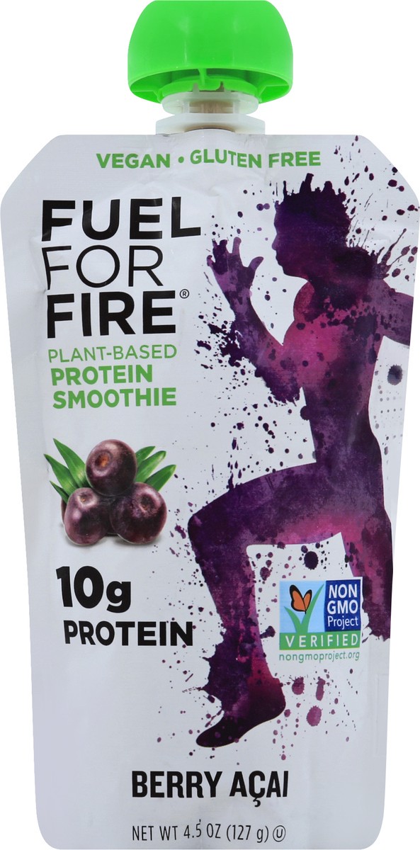 Nothing artificial. 10 g protein. Vegan. Gluten free. Dairy free. Non GMO Project verified. nongmoproject.org. Plant-based. No added sugar. A delicious blend of fruit + protein to fuel your day. fuelf…