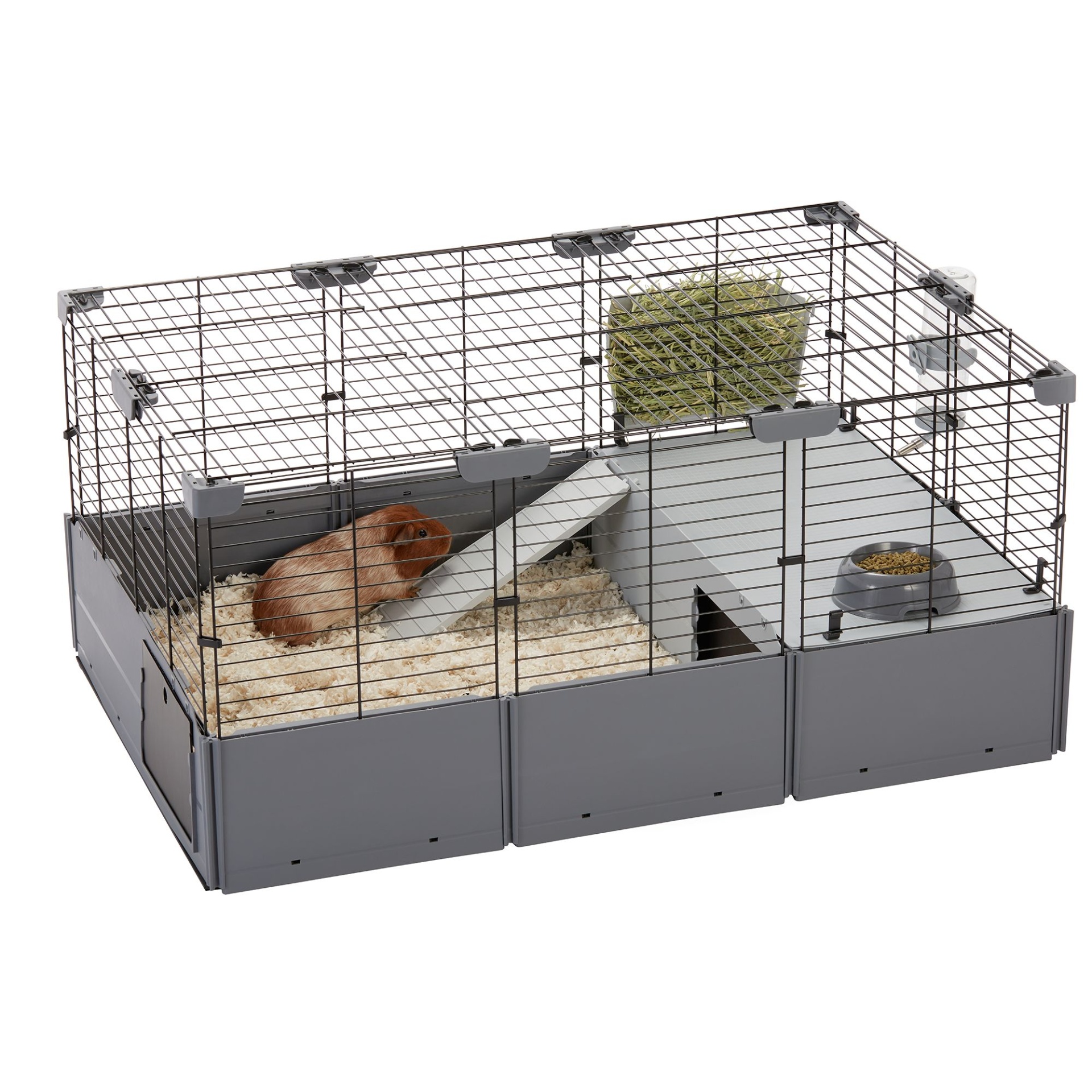 Full Cheeks Customizable Small Pet Habitat - Includes Cage, Hideaway, Hay Feeder, Bowl, & Bot