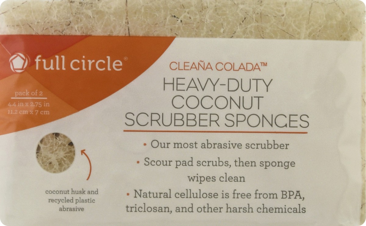 Full Circle Cleana Colada Pack of 2 Heavy-Duty Coconut Scrubber Sponges 2 ea