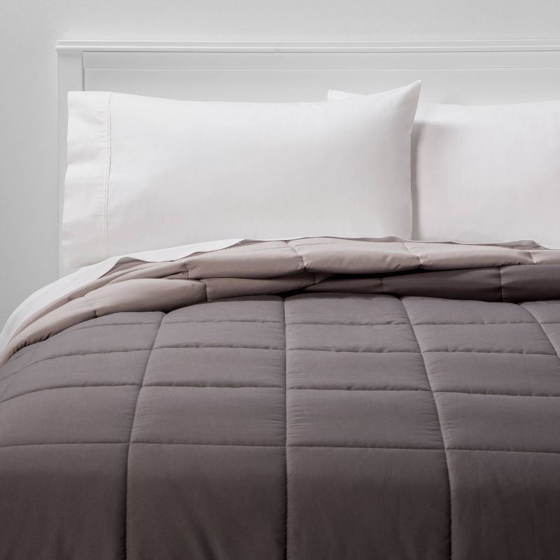 slide 5 of 5, Full/Queen Reversible Microfiber Solid Comforter Dark Gray/Light Gray - Room Essentials, 1 ct