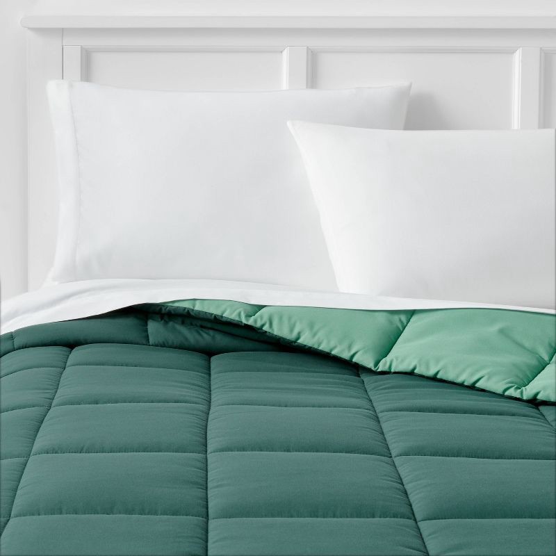 Full/Queen Reversible Microfiber Solid Comforter Dark Green/Green - Room Essentials