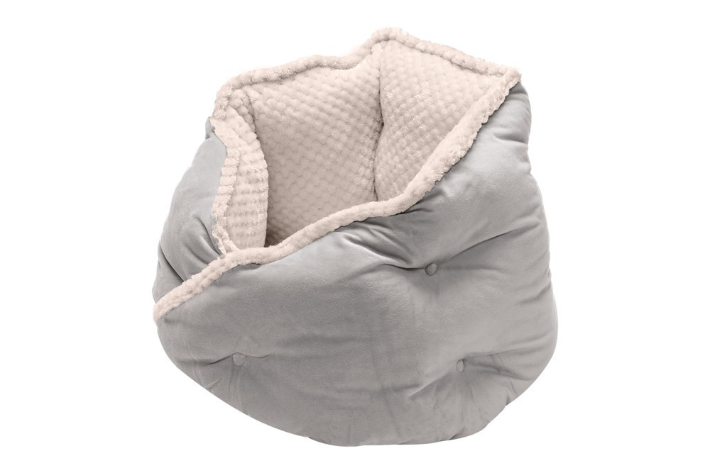 Furhaven Round Teacup Minky Plush & Velvet Calming Washable Hug Nest Dog Bed, 18" L, Small, Silver Gray
