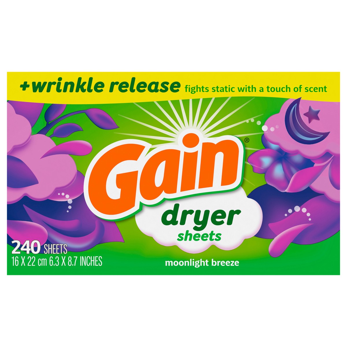 Gain dryer sheets Plus Wrinkle Release, Moonlight Breeze Scent, 240 Count, Fights static with a touch of scent, laundry sheets