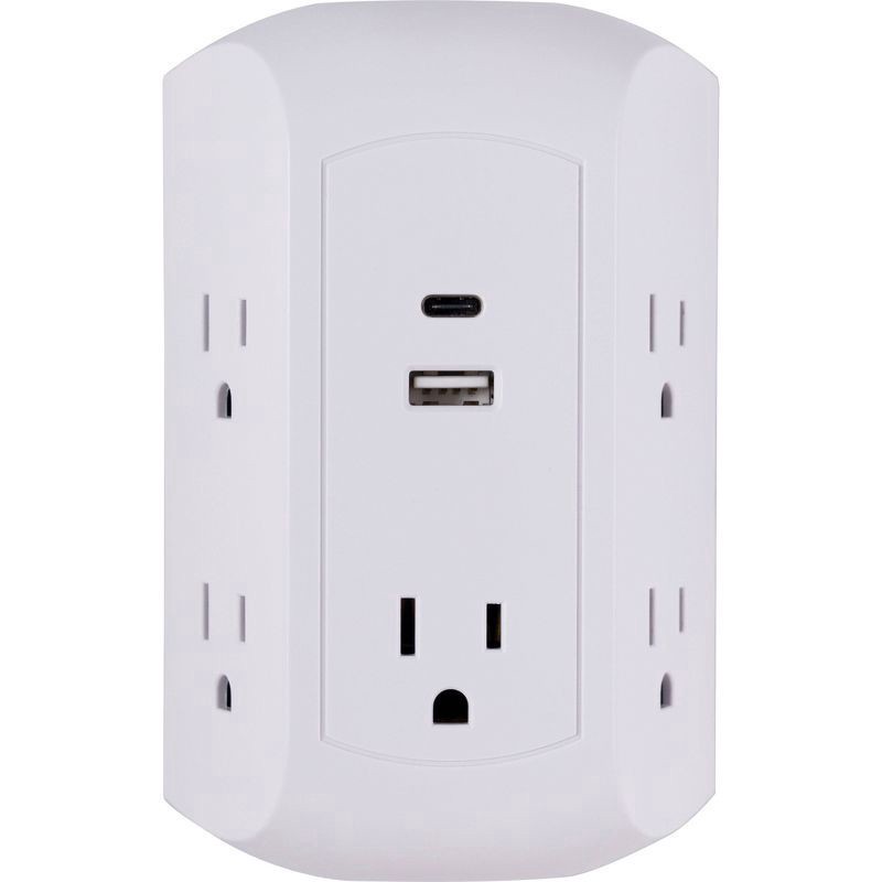 GE 5-Outlet Tap 2 USB Ports White