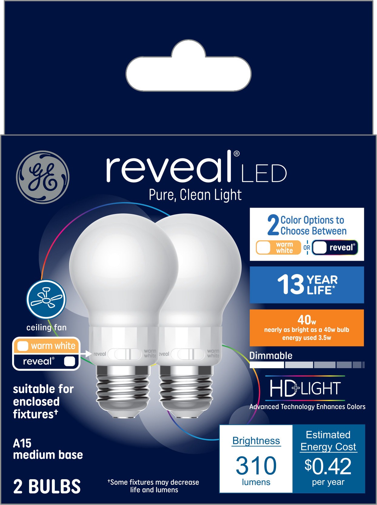 GE Reveal HD 40 -Watt EQ A15 Switchable white Dimmable LED General purpose Light Bulb 2 -Pack