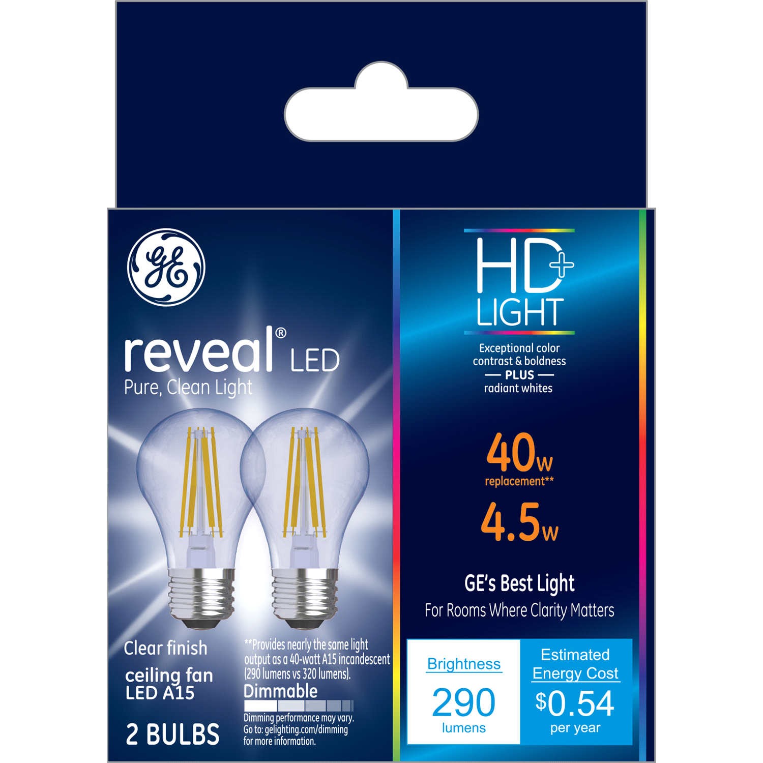 GE Reveal HD+ 40W Replacement LED Light Bulbs Ceiling Fan White Medium Base A15