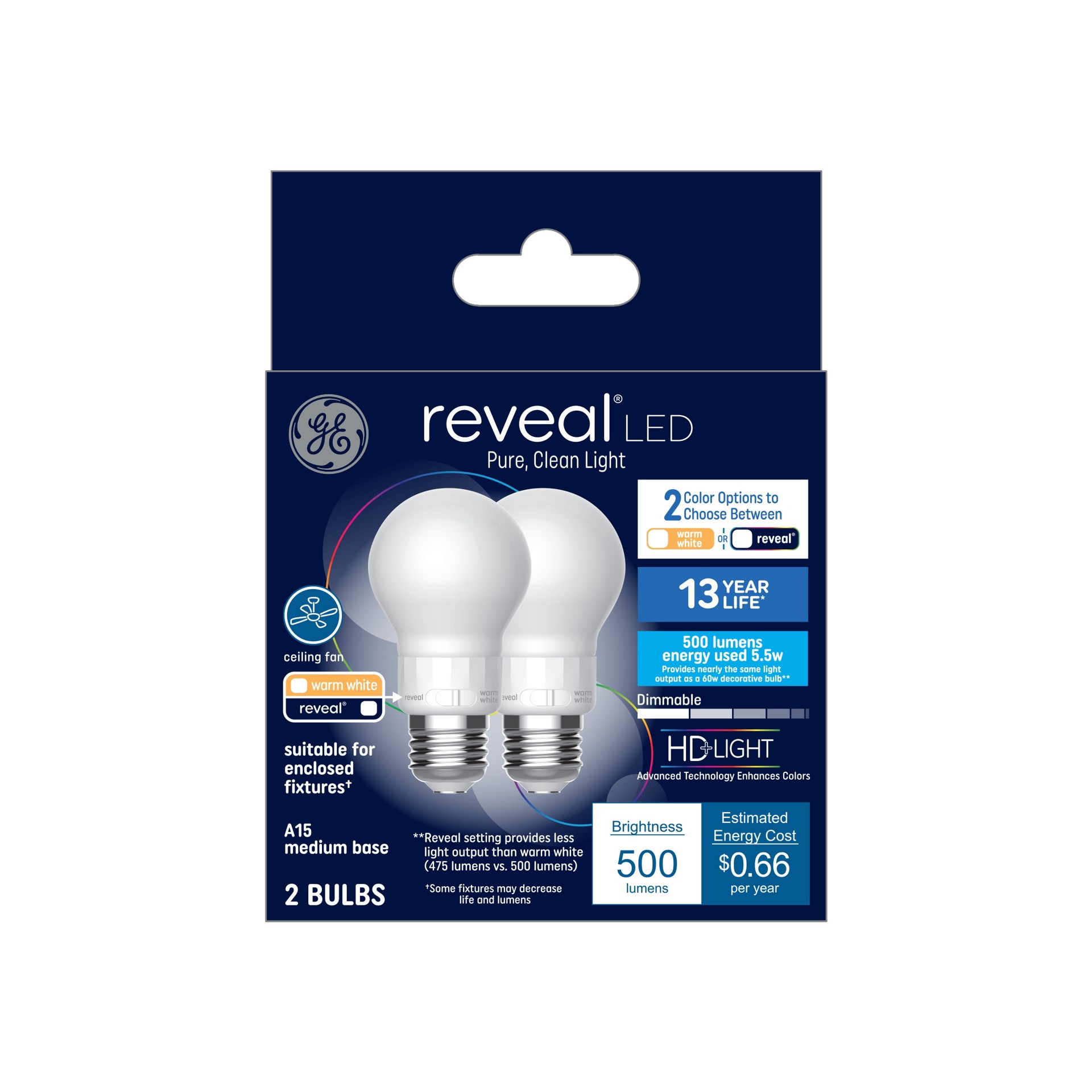 GE Reveal HD 60 -Watt EQ A15 Switchable white Medium base (E-26) Dimmable LED General purpose Light Bulb 2 -Pack