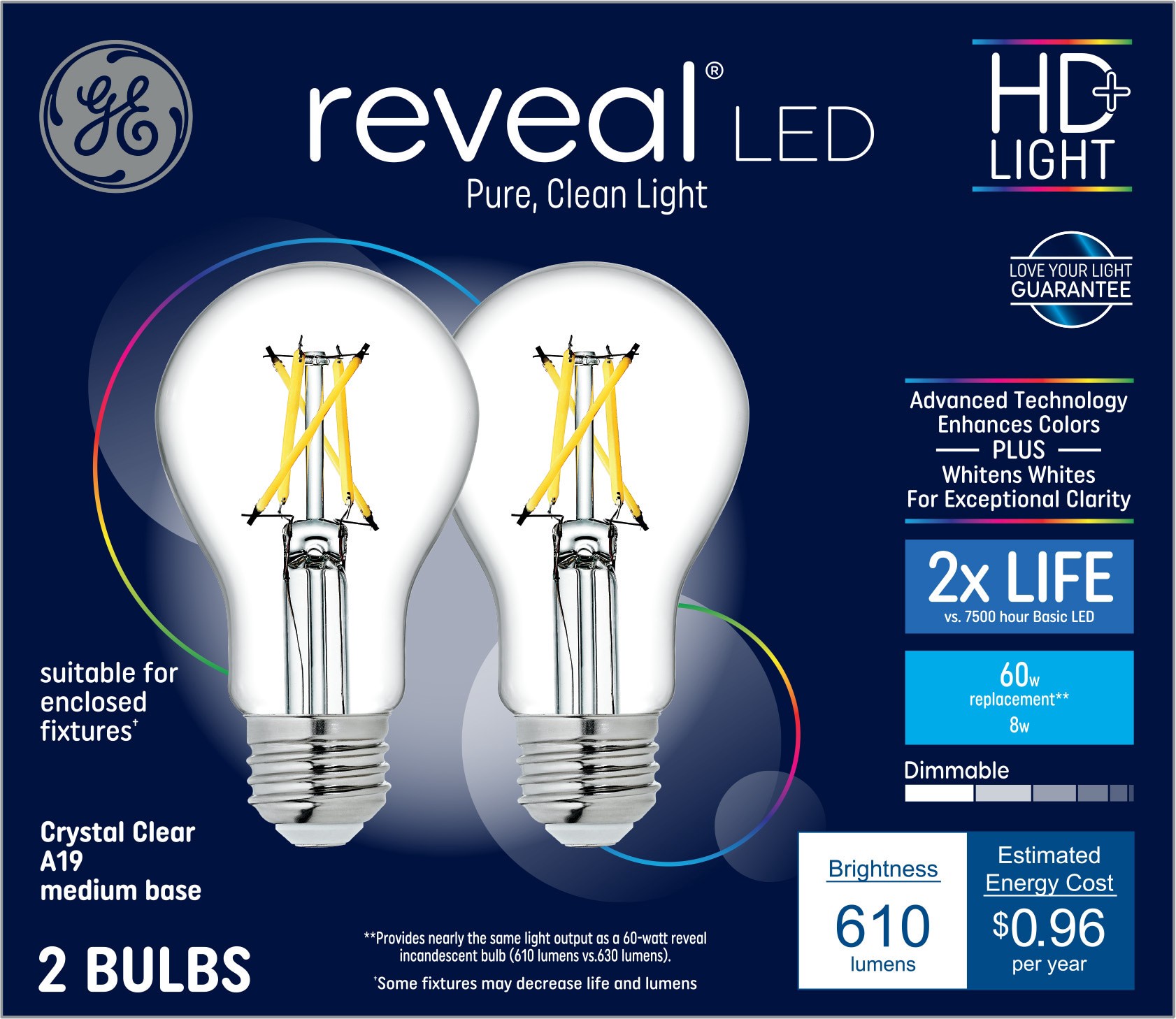 GE Reveal 60 -Watt EQ A19 Color-enhancing Medium base (E-26) Dimmable LED General purpose Light Bulb 2 -Pack