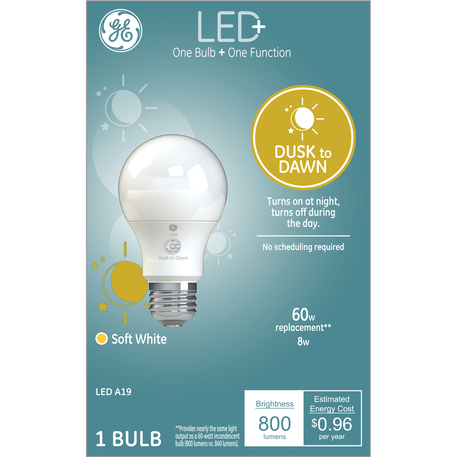 GE Soft White LED 8.5 Watts Dusk to Dawn A19 Bulb 1 Each
