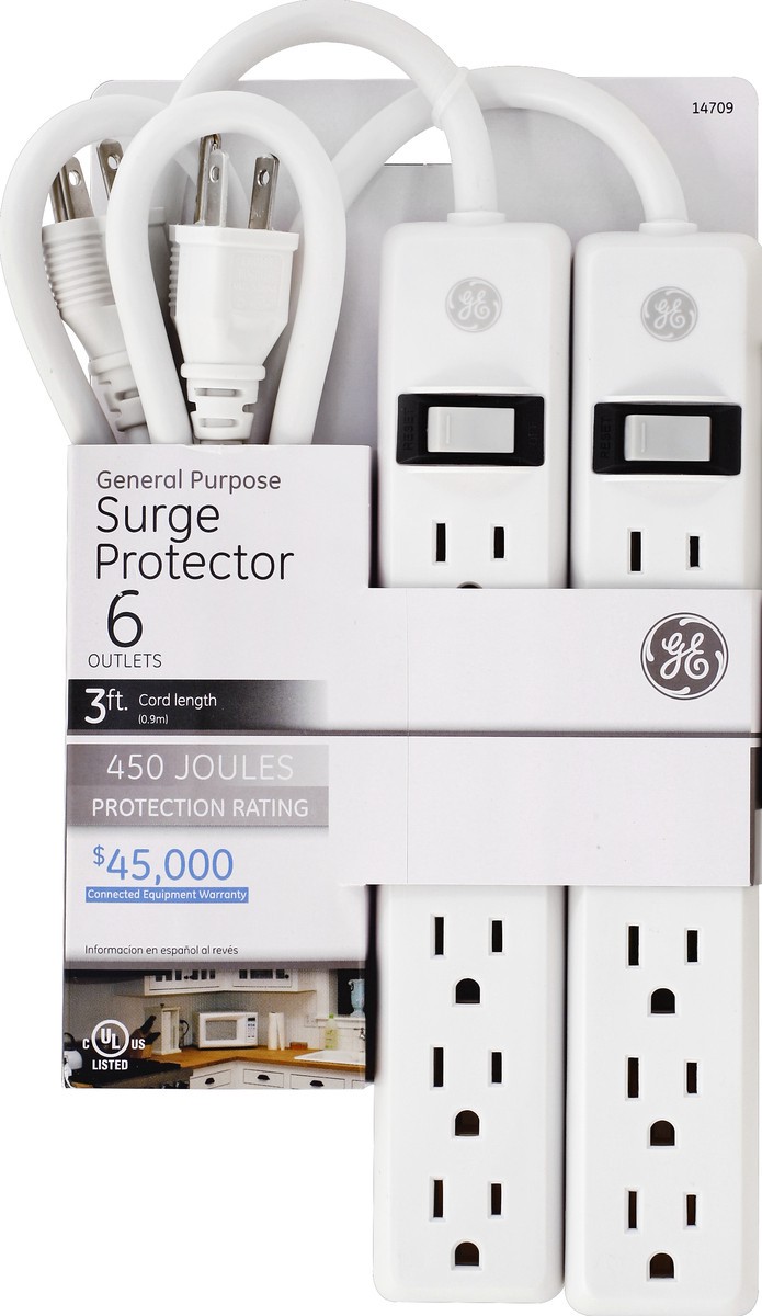 3 ft cord length (0.9 m). 450 joules protection rating. $45\,000 connected equipment warranty. UL listed. 6 protected outlets. 3 ft. power cord. Integrated circuit breaker - provides overload protecti…