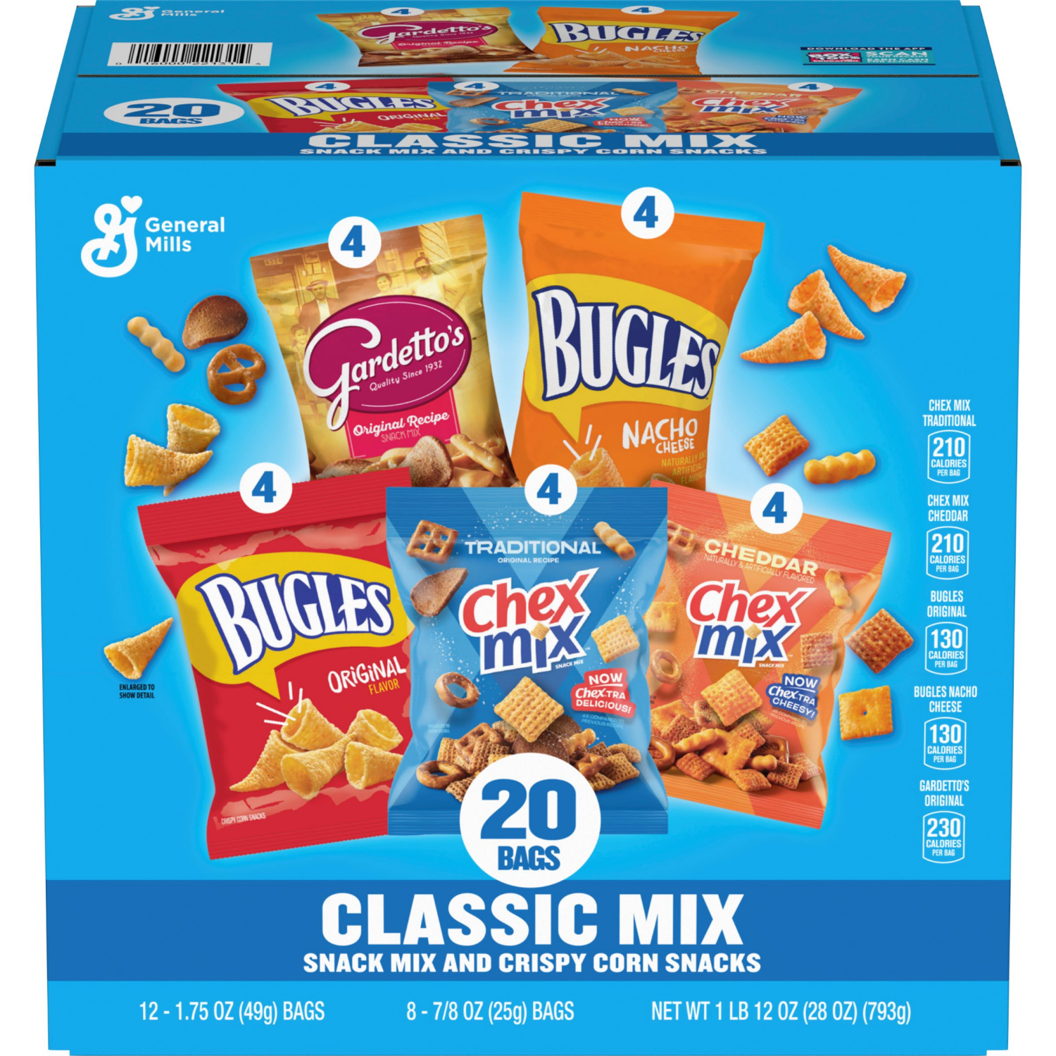 General Mills Classic Mix Snack Variety Pack, Bugles Original and Nacho Cheese, Gardetto's Original Recipe, Chex Mix Traditional and Cheddar, 20 Ct, 28 oz
