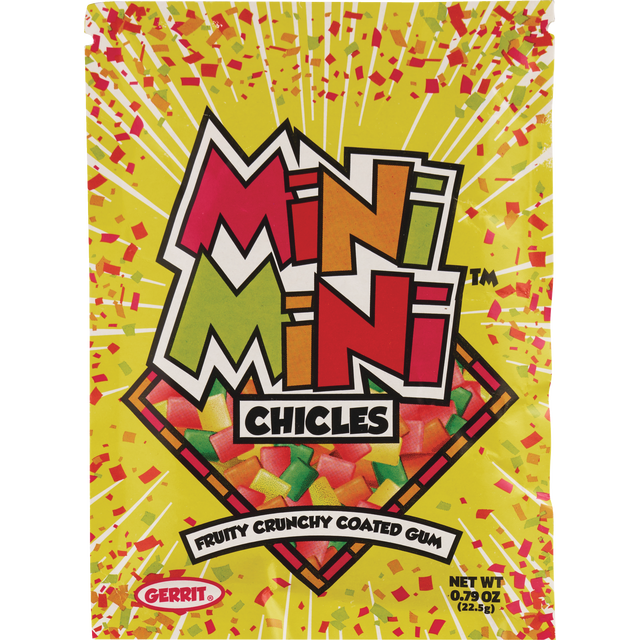 Sugar, Gum Base, Glucose Syrup, Artificial Flavors, Thickener (Gum Arabic), Sweetener (Sorbitol, Aspartame), Emulsifier (Sunflower Lecithin), Artificial Colors (Turmeric, Paprika Extract, Copper Chlor…