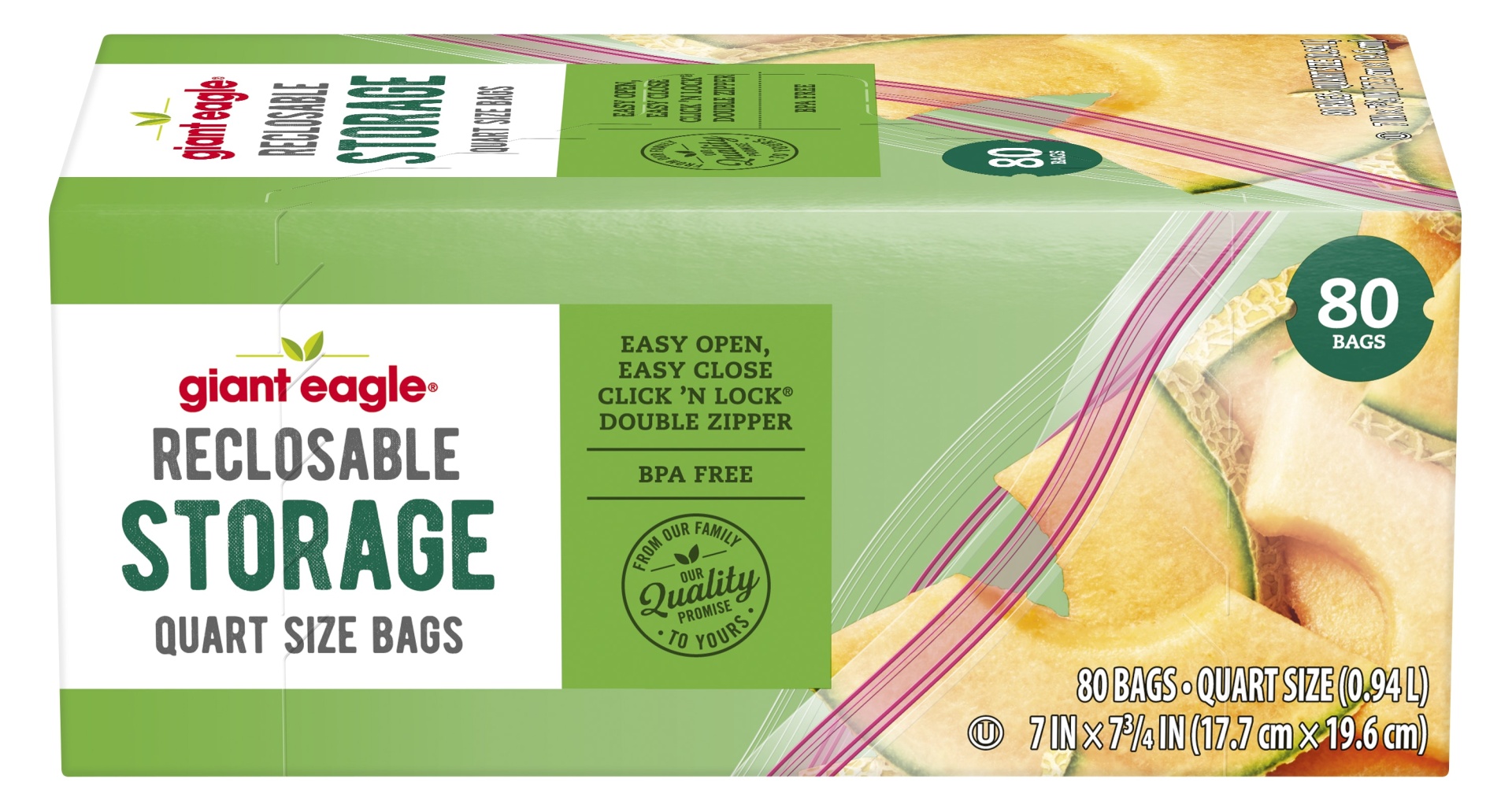 Giant Eagle Reclosable Storage Quart Size Bags, 80 Count