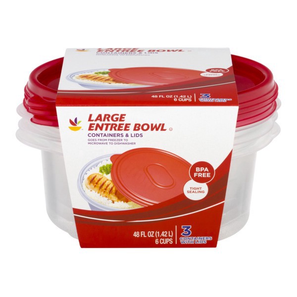 slide 1 of 1, Giant Large Entree Bowl Containers & Lids 6 Cups, 3 ct