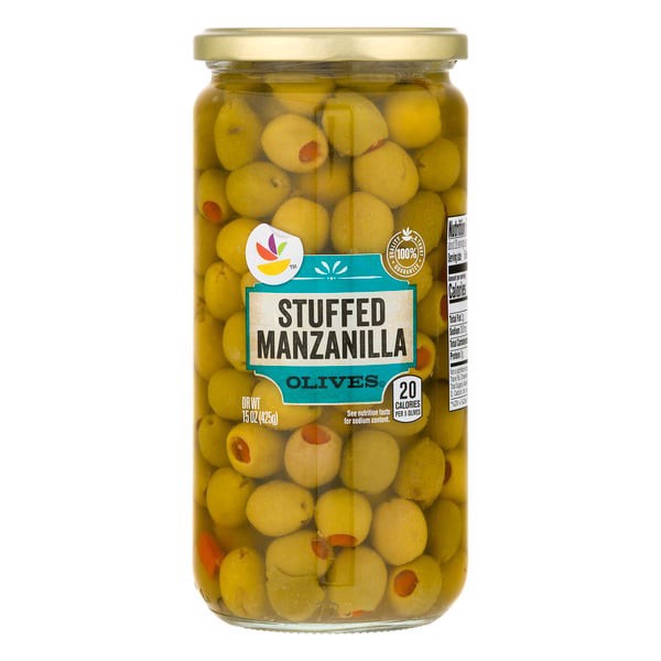 slide 1 of 1, Giant Stuffed Manzanilla Olives, 15 oz