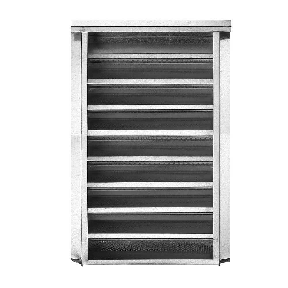 Net free vent area 147 square inches. 28-Gauge galvanized steel construction. Rough opening 14-1/4 inch x 24-1/4 inch. Nailing flange with 7/8 in reveal for stucco construction. 1/8 inch galvanized wi…