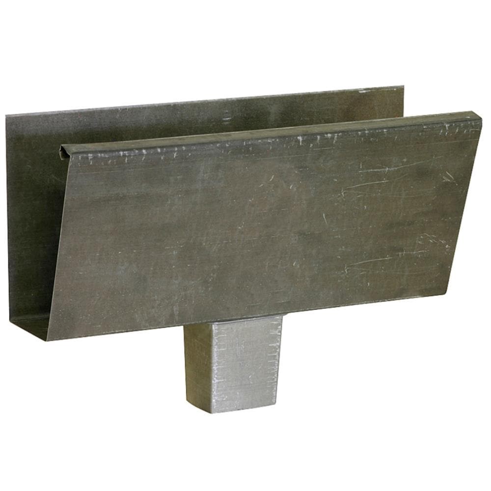 Connects 4 in steel fascia gutter to a 1-3/4 in x 2-3/4 in downspout. Made from professional grade 26 gauge bonderized steel. For use with 4 in steel fascia gutter systems. Bonderized steel is ready t…