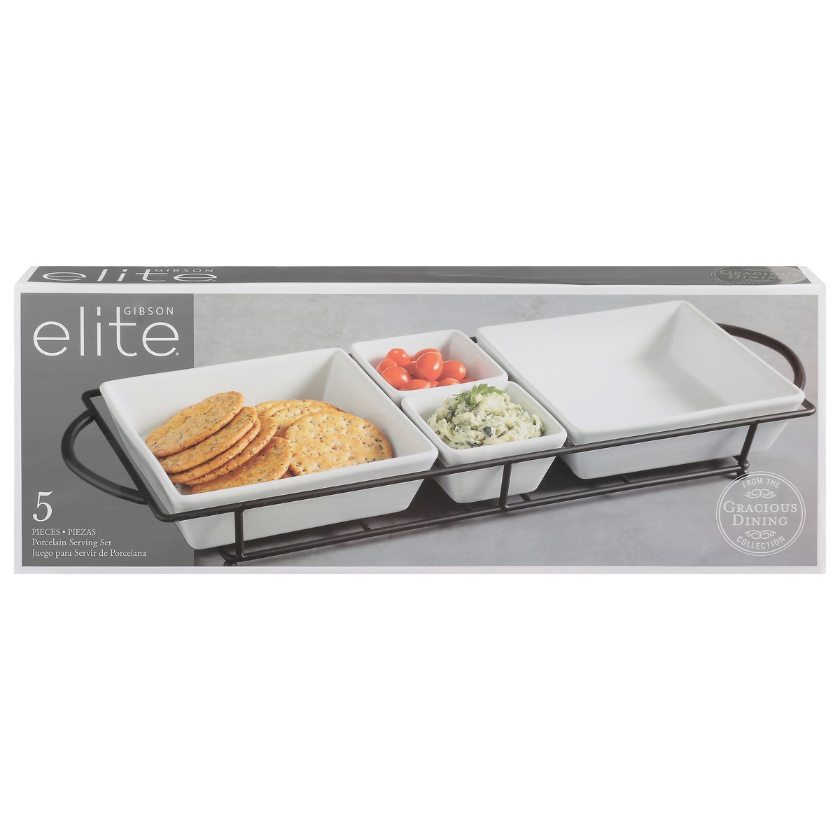 Gibson Elite Gracious Dining Collection Set of 4 Stoneware Rectangle Serving Tidbit Dishes Set with Metal Rack 1 ea