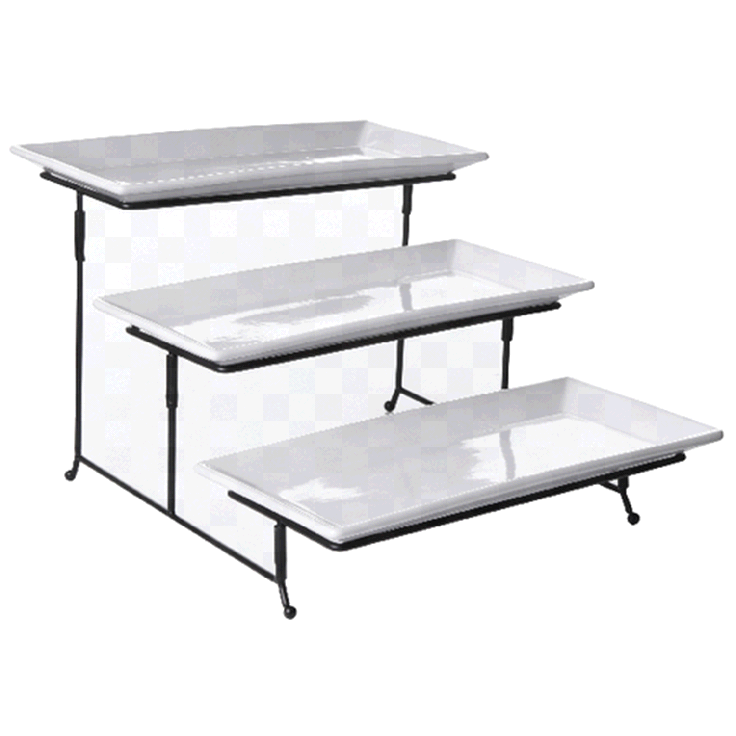 Gibson Home Gracious Dining Collection 3 Tiered Stoneware White Serving Tray Set with Metal Stand 1 ea