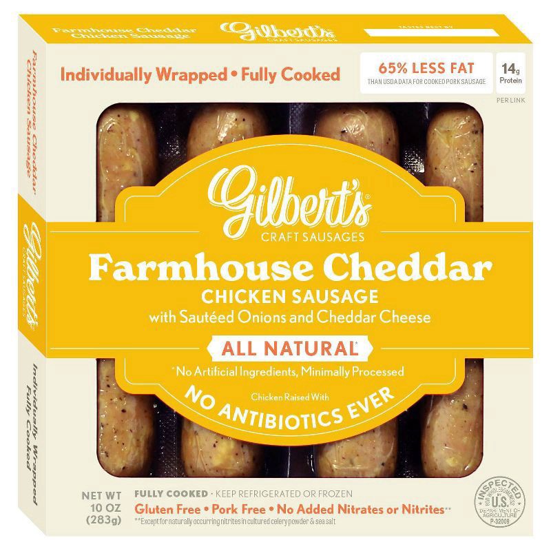 Classic cheddar flavor! Gilbert's Farmhouse Cheddar Chicken Sausage is a classic, versatile cheddar brat in our individually-wrapped links. A favorite for all ages, enjoy it on the bun or in quick-to-…