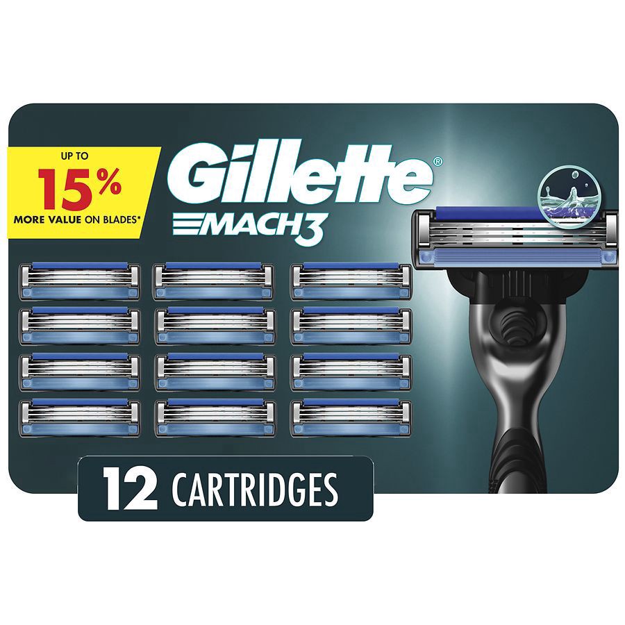 Gillette Mach3 Razor Blade Refills, 12ct Razor Cartridges, Razor Refills for Men With Lubrication Strip, 3-Blade Razor Blades for Close Shave