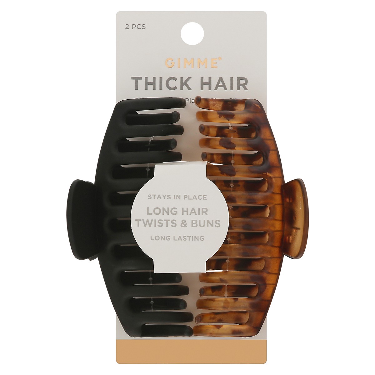GIMME Classic Claw Clips Black Taupe 2CT Classic Shaped Claw Clips are an innovative solution for thick hair. The outer shape is designed so that the claw clips rest comfortably on the head to avoid t…