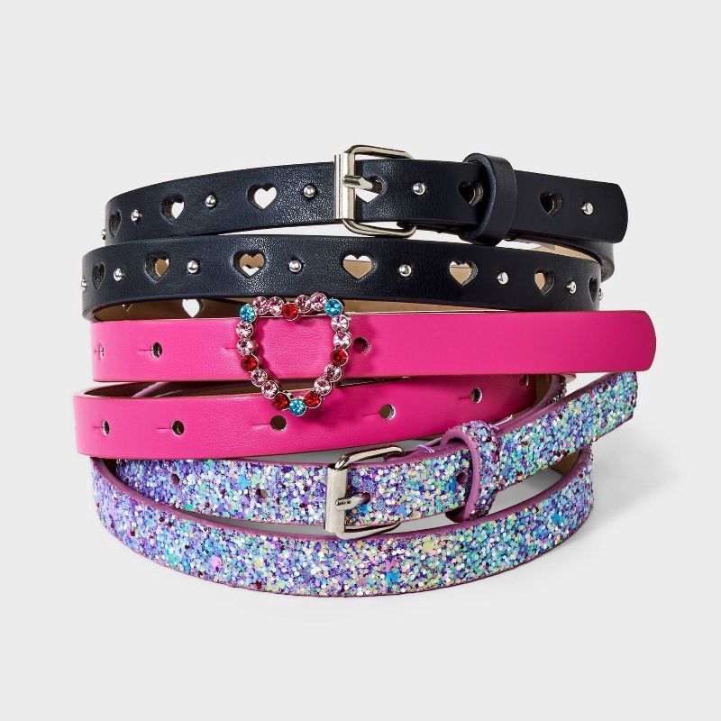 Add a touch of style to their ensemble with the Girls' 3pk Heart Belt Set - Cat & Jack™. This set comes in a pack of three belts, each showcasing heart patterns and colors. With adjustable lengths, th…