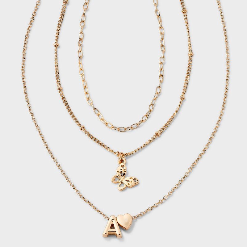 Girls' A Initial with Choker and Layered Necklace Set - art class™ Gold