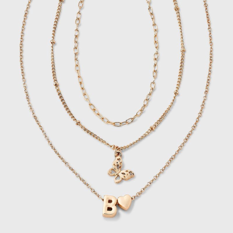Girls' B Initial with Choker and Layered Necklace Set - art class™ Gold