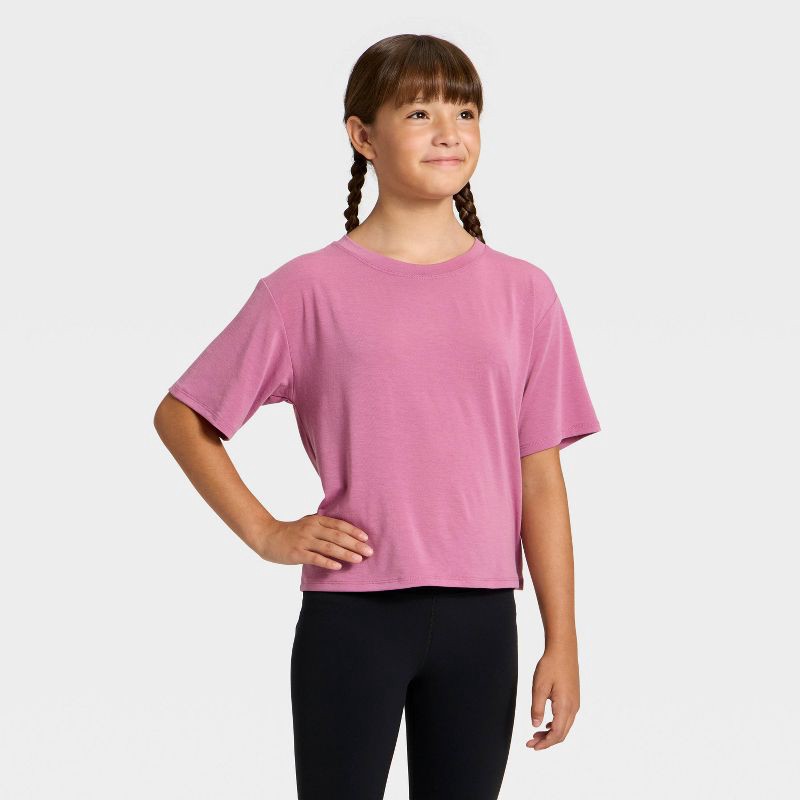 Why we're ALL IN:Beyond ease cropped boxy T-shirt in a solid hue with a pullover design, round neckline, and short sleeves with dropped shoulders. Made from extra-lightweight jersey fabric blend of re…