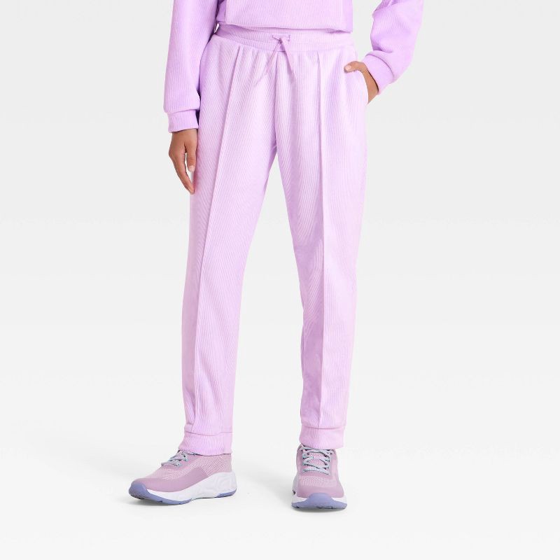 Girls' Cozy Ribbed Jogger Pants - All In Motion™ Lilac Purple XS