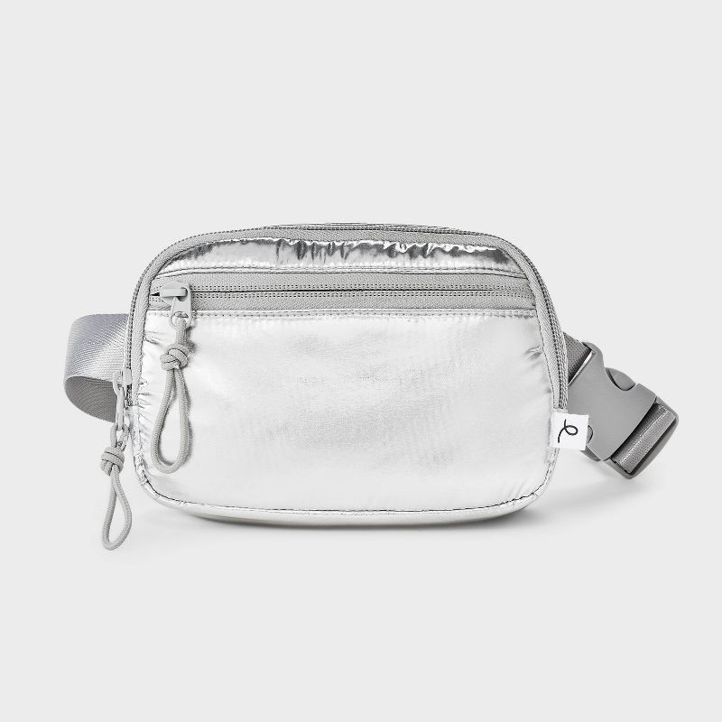 Add a touch of sparkle to any outfit with this stylish fanny pack in a silver color. Perfect for kids and young adults, it features a front zip pocket and adjustable strap for convenience and comfort.…