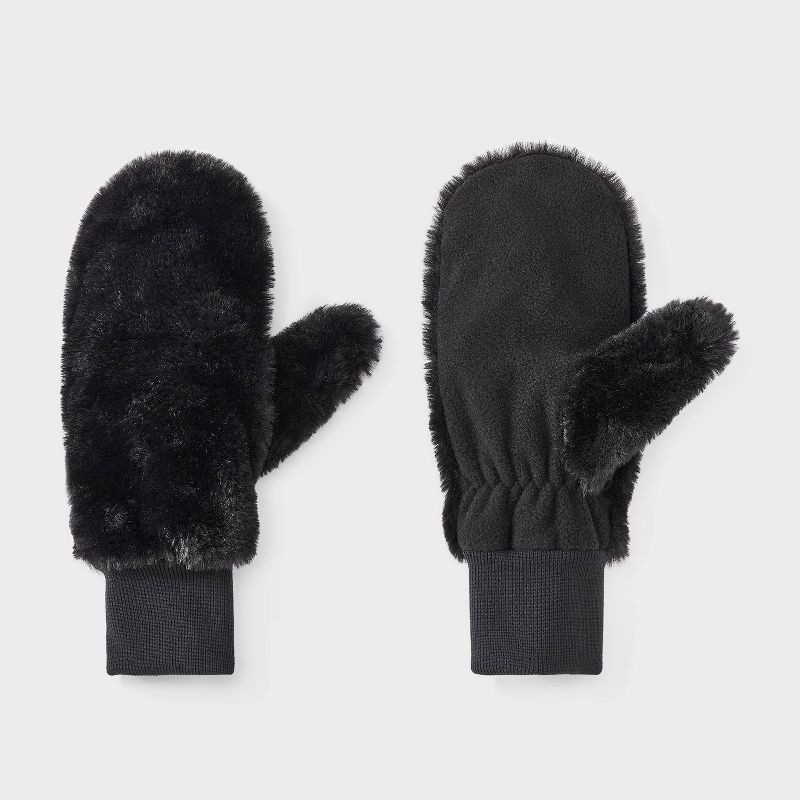 Keep little hands cozy with these stylish mittens from Art Class. Crafted from midweight fabric, these mittens feature a fleece and faux fur construction for a soft touch. The black color adds a class…