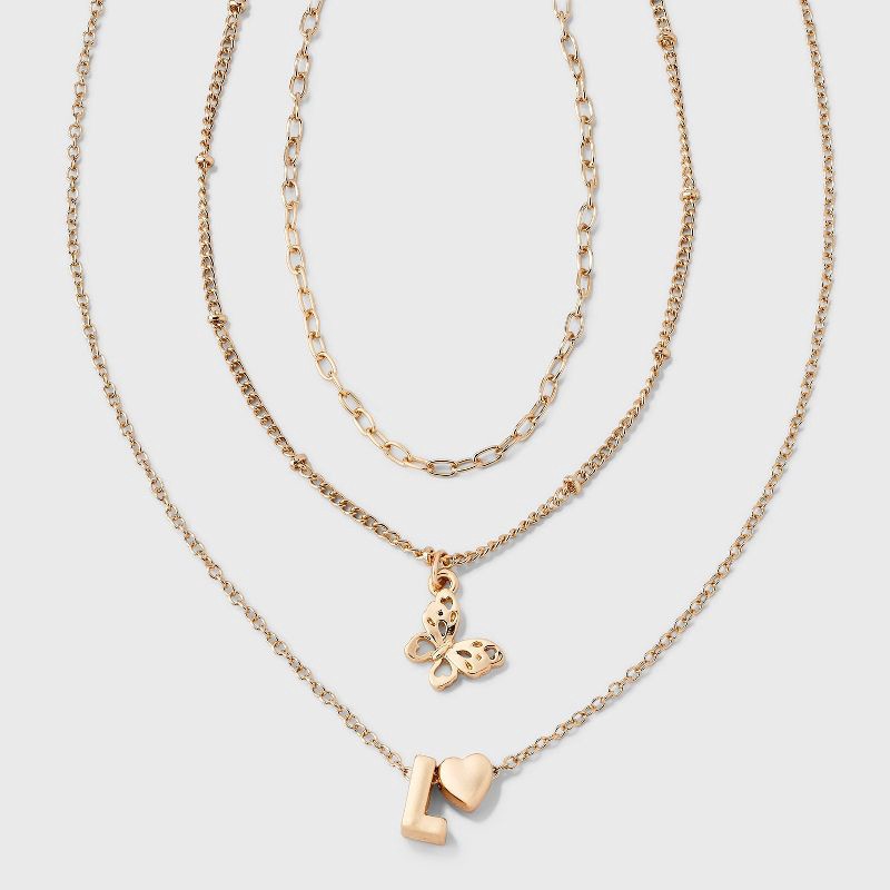 Girls' L Initial with Choker and Layered Necklace Set - art class™ Gold