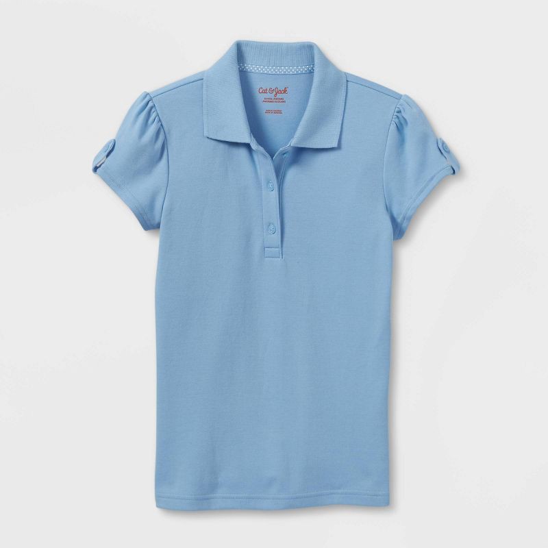 Girls' Short Sleeve Interlock Uniform Polo Shirt - Cat & Jack™ Light Blue S: School Apparel, Pullover Design