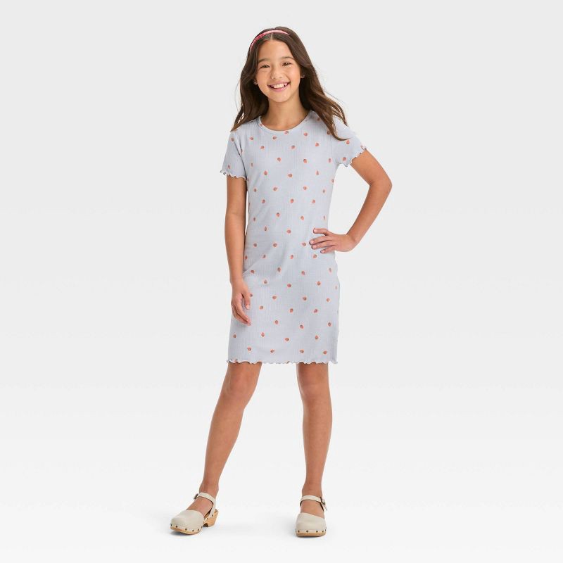 Girls' Short Sleeve Rib-Knit Dress - art class™ Blue Strawberry M