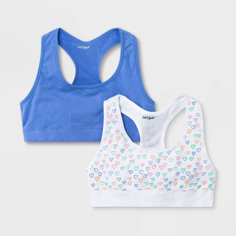 Girls' Solid 2pk Heart Sports Bra - Cat & Jack™ Blue/White S