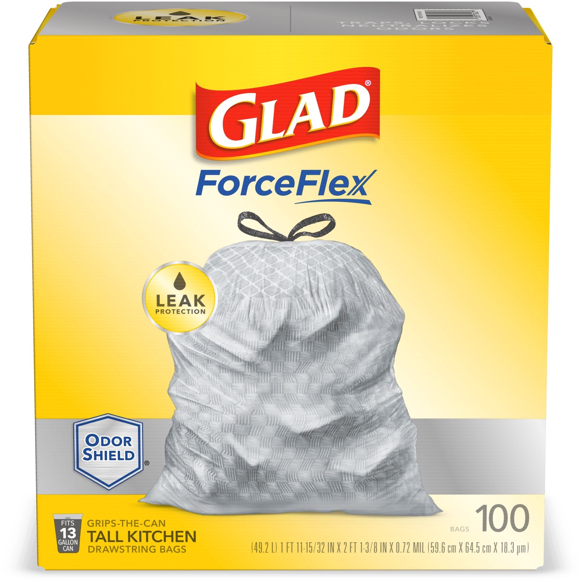 Continuously neutralizes odors. LeakGuard and RipGuard Protection. Fights odor-causing bacteria. 13 GALLON PLASTIC TRASH BAGS: Kitchen trash has never smelled better Glad ForceFlex Kitchen trash bags …