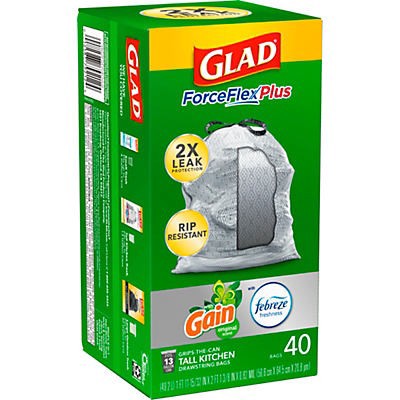 Glad ForceFlex MaxStrength Drawstring Tall Kitchen Trash Bags provide maximum strength and help you fight kitchen odors with the steady release of Gain Original scent with Febreze freshness. These 13 …