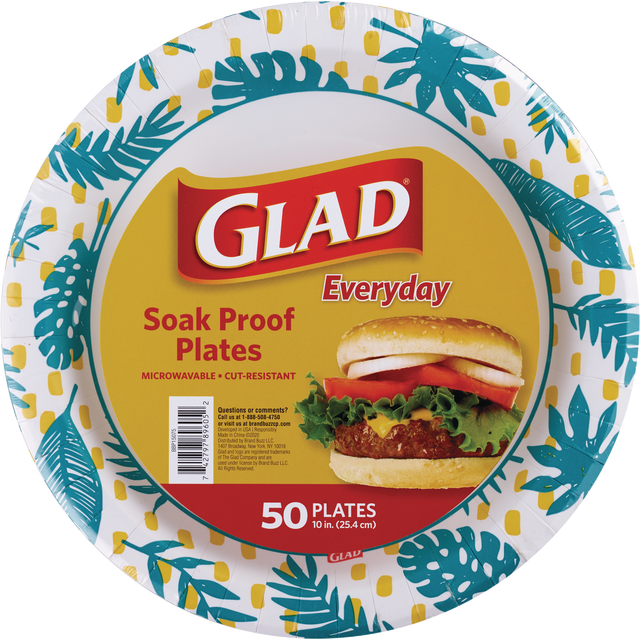 Glad Soak Proof Everyday plates make mealtime easy. Made from the highest quality materials to prevent liquids from seeping through, these strong, durable, and beautiful paper plates will instantly dr…