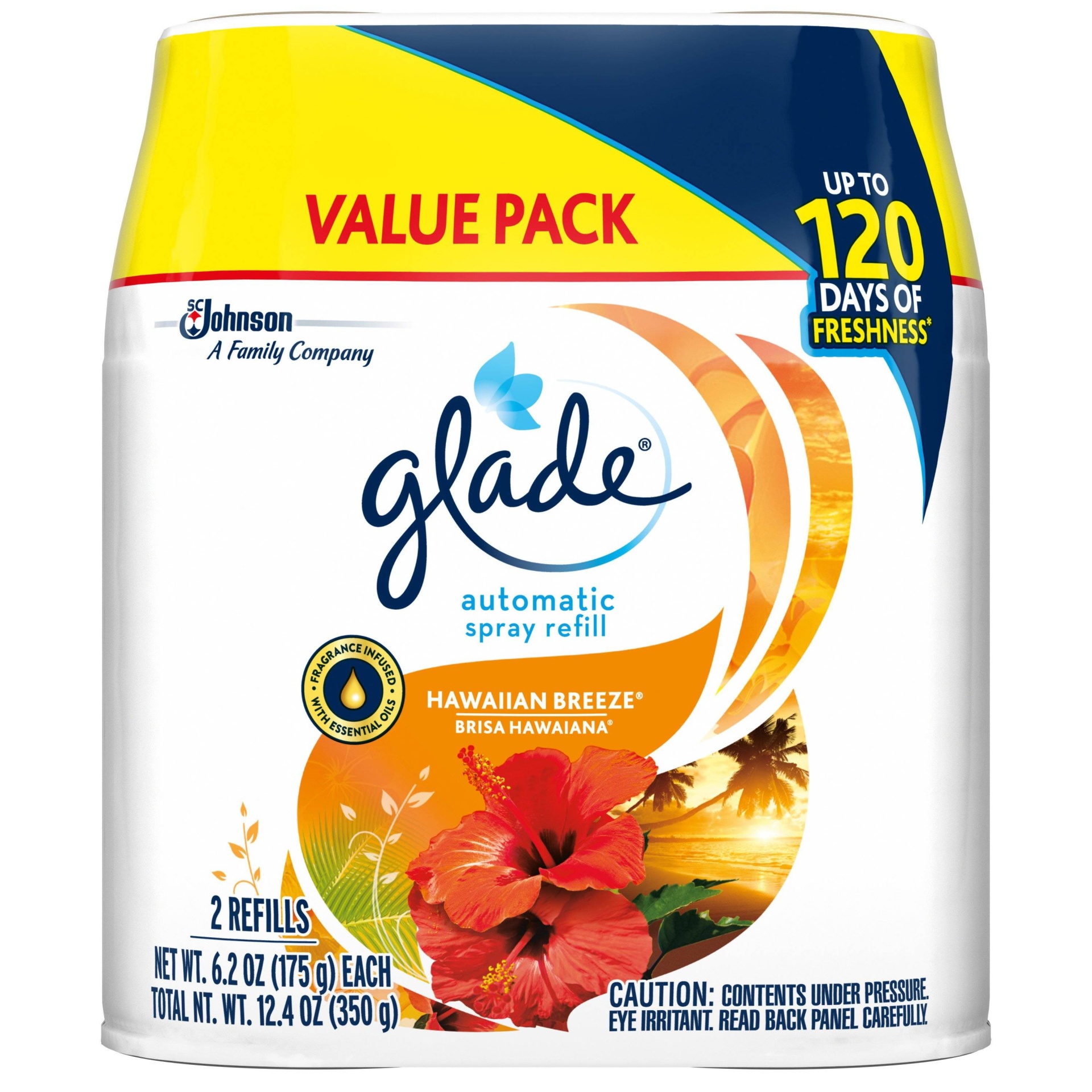 Freshen your room with the tropical scent of pineapple and citrus with the Hawaiian Breeze Automatic Spray Refill from Glade. This pack of two automatic air freshener refills will fill your home with …