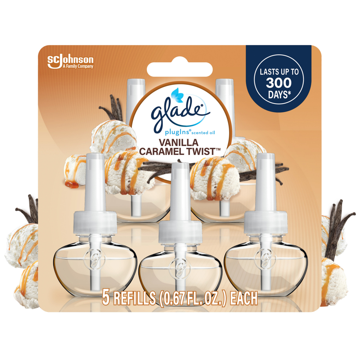 Glade PlugIns Vanilla Caramel Twist Scented Oil Refills 5 - 0.67 fl oz Refills