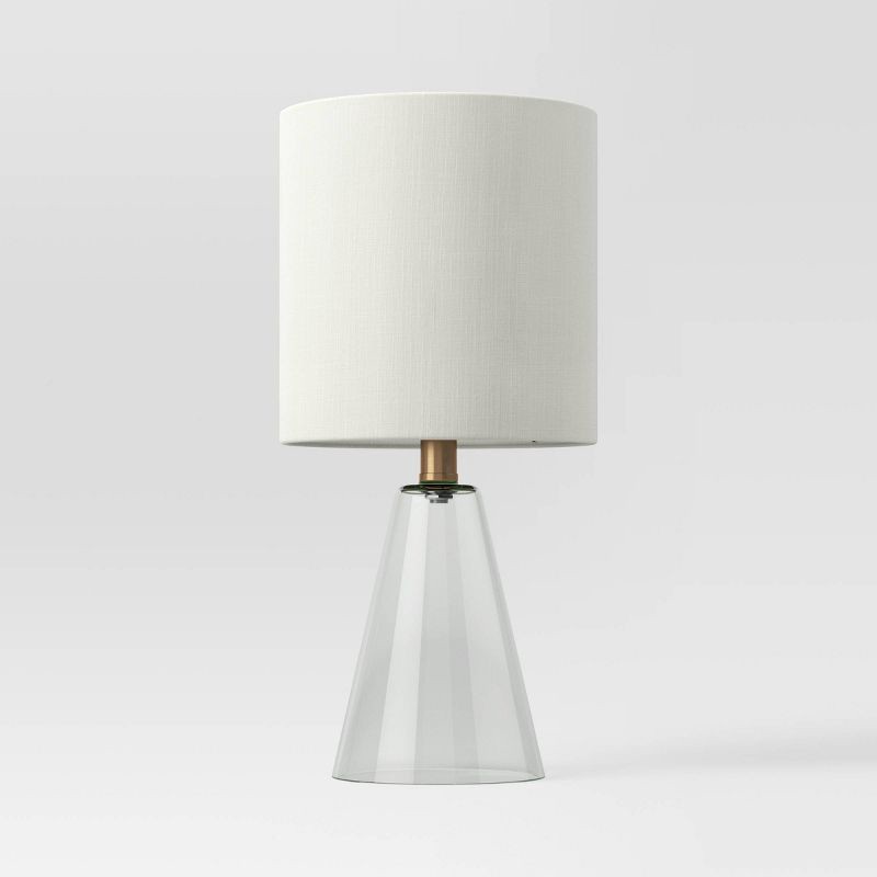 Add a modern touch to your indoor lighting with this Glass Cone Mini Table Lamp from Threshold. This mini table lamp features a cone-shaped base in a clear glass finish for a look that easily pairs wi…