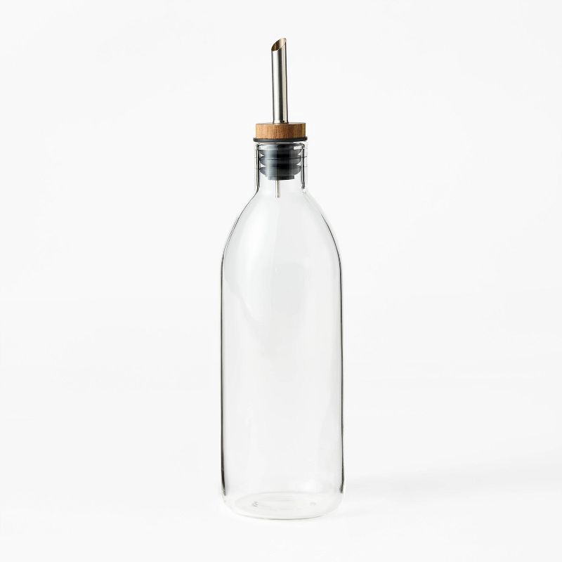 Bring ease to your everyday cooking with the Glass Olive Oil Bottle from Figmint™. This see-through olive oil bottle features a wooden lid with a spout for convenient pouring. Made of glass, the bottl…