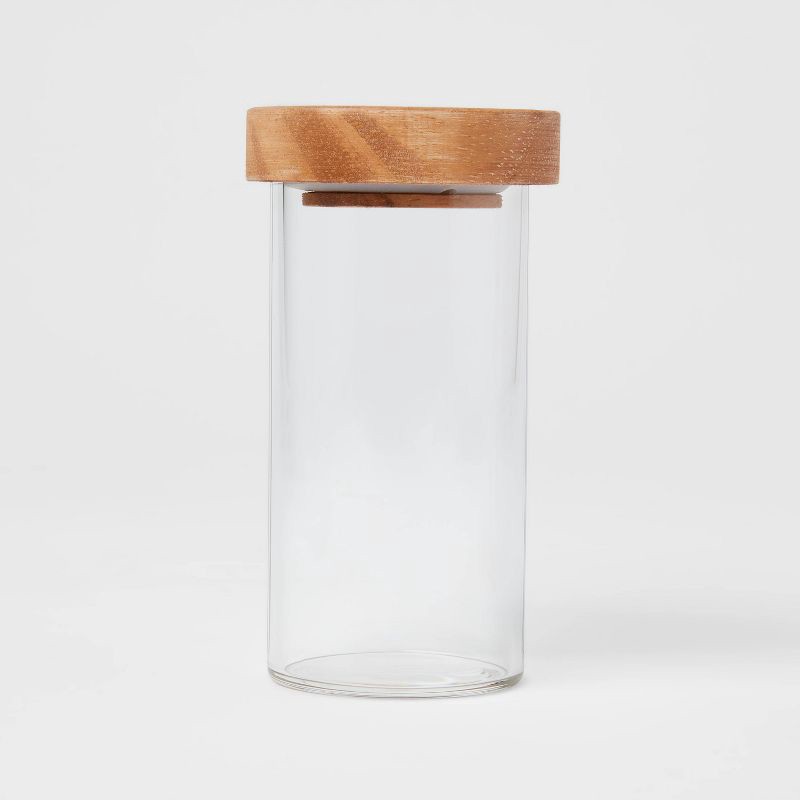 Bring function and style to your kitchen counters or table spread with the 4-Ounce Glass Round Spice Jar with Wood Lid from Threshold™. This glass spice jar features a cylindrical silhouette with a ro…