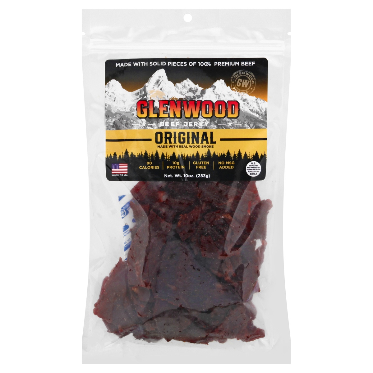 Made with real wood smoke. Made with solid pieces of 100% premium beef. 90 calories. 10 g protein. Gluten free. No MSG added. Glenwood snacks. From the shadows of the mighty Teton mountains, Glenwood …