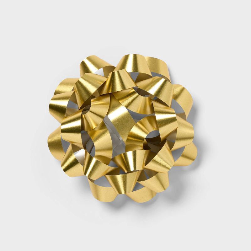 Dress up any gift with this Glitter Gift Bow from Spritz™. This large decorative bow features golden ribbon strands in a metallic finish arranged into a blooming flower-like shape to add the perfect f…